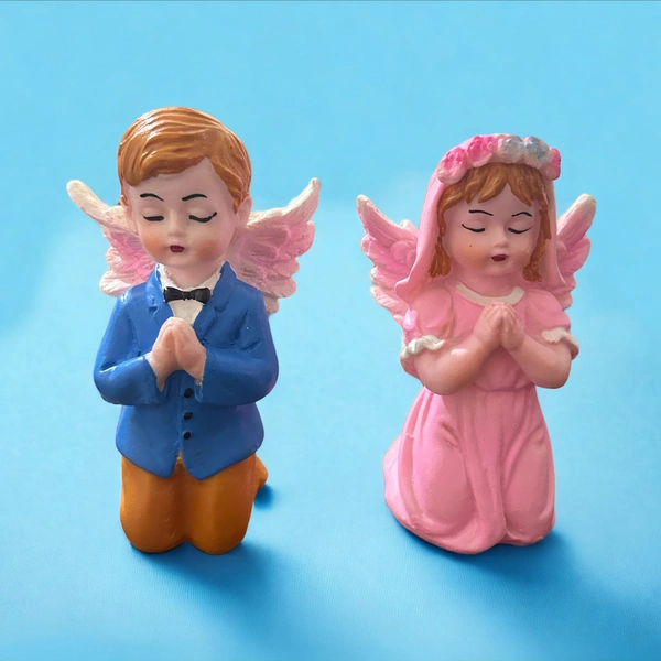 A "Baby Angel Couple statue" likely refers to a decorative or artistic representation of two baby angels or cherubs in a romantic or affectionate pose. Cherubs are often depicted as winged, chubby infants or children and are commonly associated with love, affection, and innocence in art and symbolism.