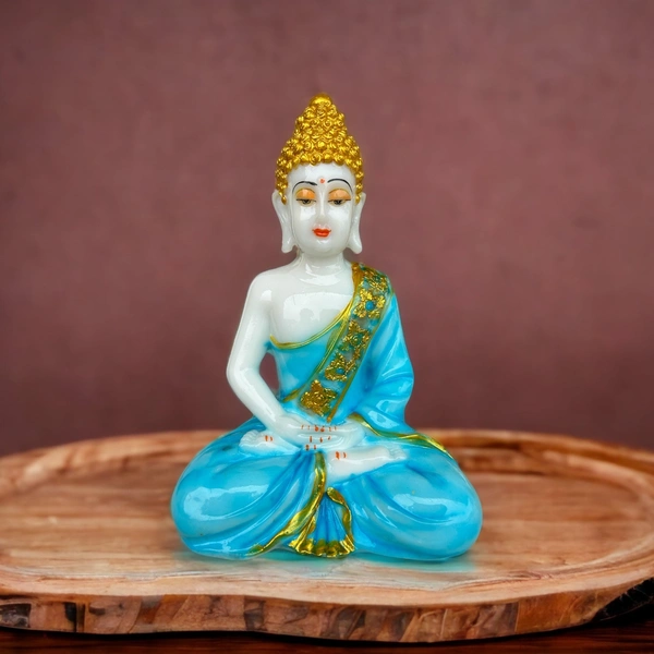 Big Sitting Buddha Vastu I Fengshui I Statue I I Home Temple Dcor I Decorative I Showpiece (White& Blue, 10-Inch)