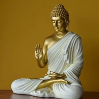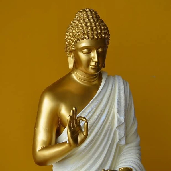 Resin Home Decor Buddha Idol for Living Room (Size:15 inches) (Golden White)